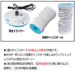 | 仕様 | ■サイズ: [再生ドライヤー]約幅15x奥11.5x高11cm [乾燥キャニスター]約幅8.5x奥7.5x高15cm ■重さ:[再生ドライヤー]約235g [乾燥キャニスター]約425g ■材質: [再生ドライヤー]ポリプロピレン、ABS樹脂 [乾燥キャニスター]ポリプロピレン、ABS樹脂、鉄製ビス、シリカゲルA型 ■再生可能回数:100回以上 ■再生時間:約3時間 ■電源:AC100V 50/60Hz(コード長さ約1.2m) ■セット内容:乾燥キャニスターx2、再生ドライヤーx1、ブラシx1 |