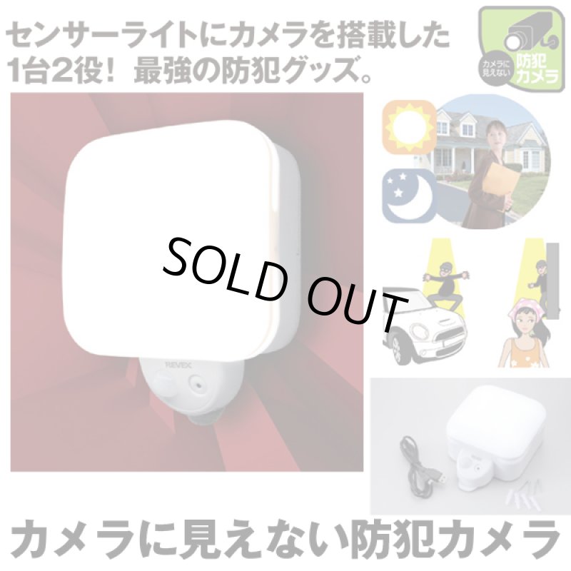 センサーライトに小型防犯カメラを搭載し、昼間、夜間を問わず人が近づくとライトが自動点灯すると同時に周囲を撮影。