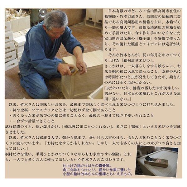 「米のうまさは保存方法で決まる」米どころ富山の頑固職人が作る米を守りながら保管する総桐米びつ!