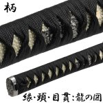 | 仕様 | ■サイズ:(約)全長104cm 刃渡70cm 柄長25cm■重量:(約)総重量1,160g 鞘払い925g ■材質:刀身:桶入刀身(乱れ刃紋)■鞘:朴の木(臙脂荒塗り) 柄:プラ製(白鮫) 金具:合金■ 下緒:人絹 黒糸 柄糸:人絹 黒糸 、縁・頭・目貫:龍の図、鍔:八角麻文様鍔※刀袋は付属いたしません。別売り(440円(税込)お問い合わせください) ■ご注意事項: ■仕様、拵、誂に付いて ・模造刀は模写、創作での拵になり刀身仕様、鞘、鍔、柄、飾金具等は実物、銘々とは異なります。 ・刀身は合金製鍍金にて切れません。 ■ご使用に付いての注意 ・掲載の模造刀は鑑賞用です。対人での太刀合い、威嚇目的、剣舞、素振り等の使用は危険ですので使用しないでください。 ・模造刀の分解、補修調整、組変え、改造は出来ない仕様になっております。 ・鑑賞以外の目的での使用、加工による事故は自己責任になります。 ■屋外携行に付いて 摸造刀は各都道府県の条例で有害玩具に該当する場合が多い為、屋外へ模造刀を携行される場合は下記携行対策をお願い致します。 ・刀袋や布等に包み携行 ・携行している理由(目的、使用方法)を明確(イベント、撮影等)にする。 |