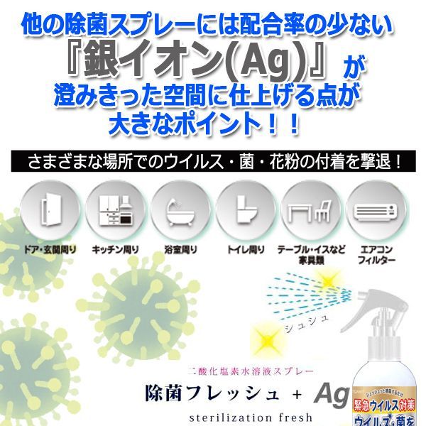 日本製二酸化塩素水溶液スプレー「除菌フレッシュAg」350ml(3本)
