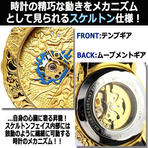 ■スケルトン仕様:[フロント]テンプギア [バック]ムーブメントギア の時計の精巧な動きをメカニズムとして見られる!